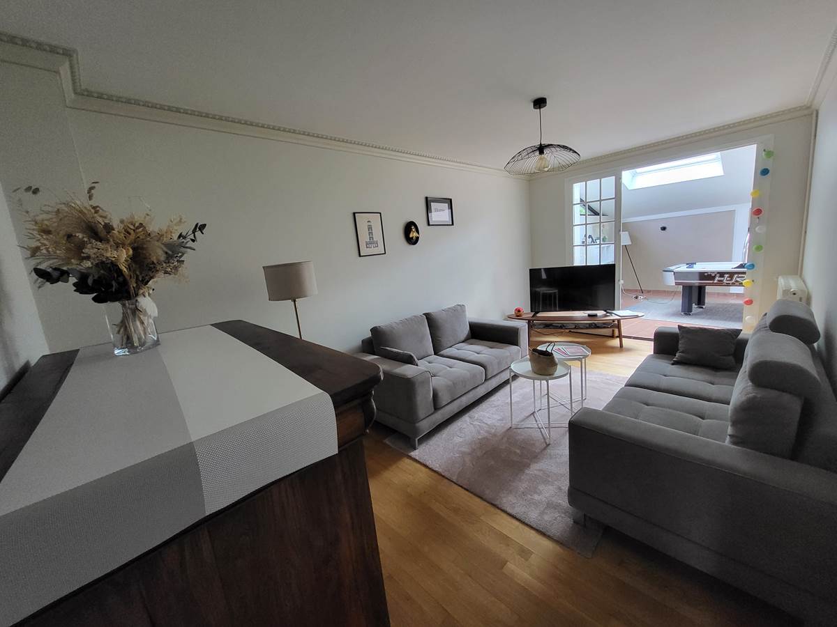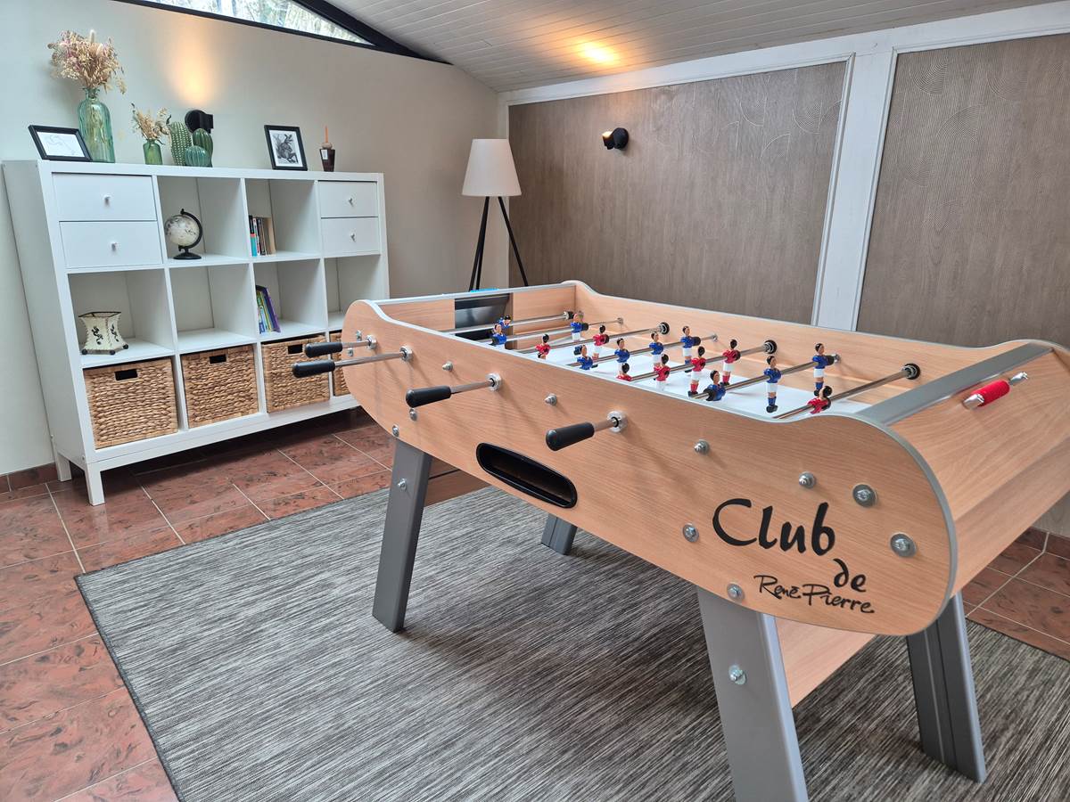 Au premier niveau, vous trouverez une entrée, une chambre de 15m2 avec dressing et un lit 160x200cm, un WC séparé, la salle d'eau avec douche et double vasque, le salon, la cuisine entièrement équipée ( plaque induction, four, réfrigérateur, grille pain, bouilloire...) , une véranda avec un Air Hockey et un salon de jardin.